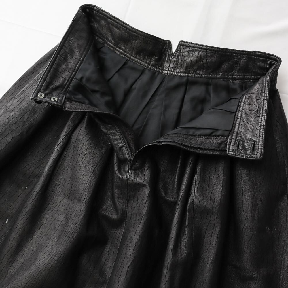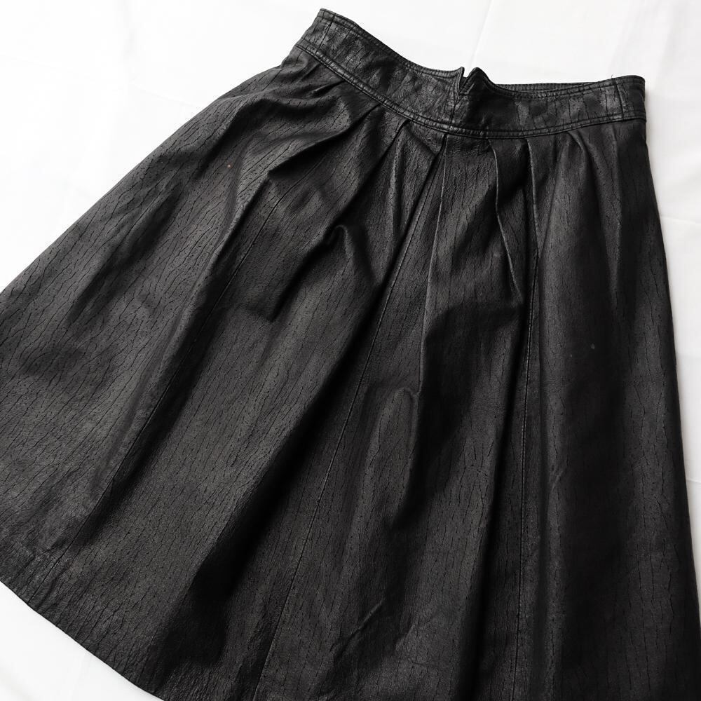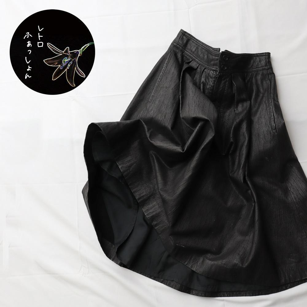 レトロ レザー 本革 フレアスカート レディース F 古着 ヴィンテージ ひざ丈 大きいサイズ 裏地あり ポケットあり vintage used ユーズド 二階堂ふみ B001