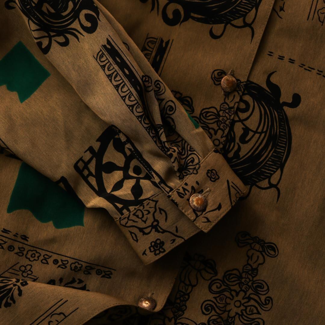 良品 レトロ アトレ 長袖 柄シャツ 大きいサイズ メンズ 古着 ヴィンテージ シャツ ブラウス トップス 総柄 アロハシャツ vintage used ユーズド アトレ attrait 菅田将暉 B034
