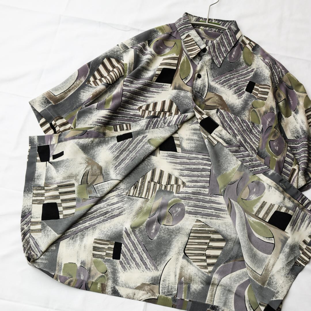 良品 レトロ ジルダ 柄シャツ 大きい 半袖 メンズ F 古着 ヴィンテージ 大きいサイズ ブラウス トップス 総柄 アロハシャツ vintage used ユーズド GILDAS 菅田将暉 B038