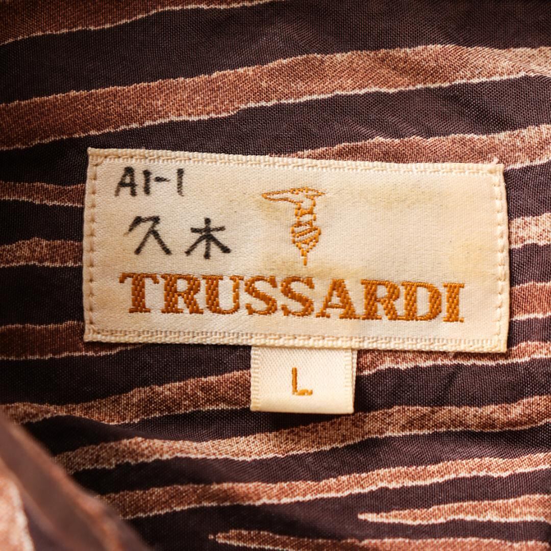 レトロ トラサルディー 柄シャツ 長袖 大きい メンズ L 古着 ヴィンテージ 大きいサイズ ブラウス トップス 総柄 アロハシャツ ストライプ vintage used ユーズド トラサルディー TRUSSARDI 堂本剛 B048