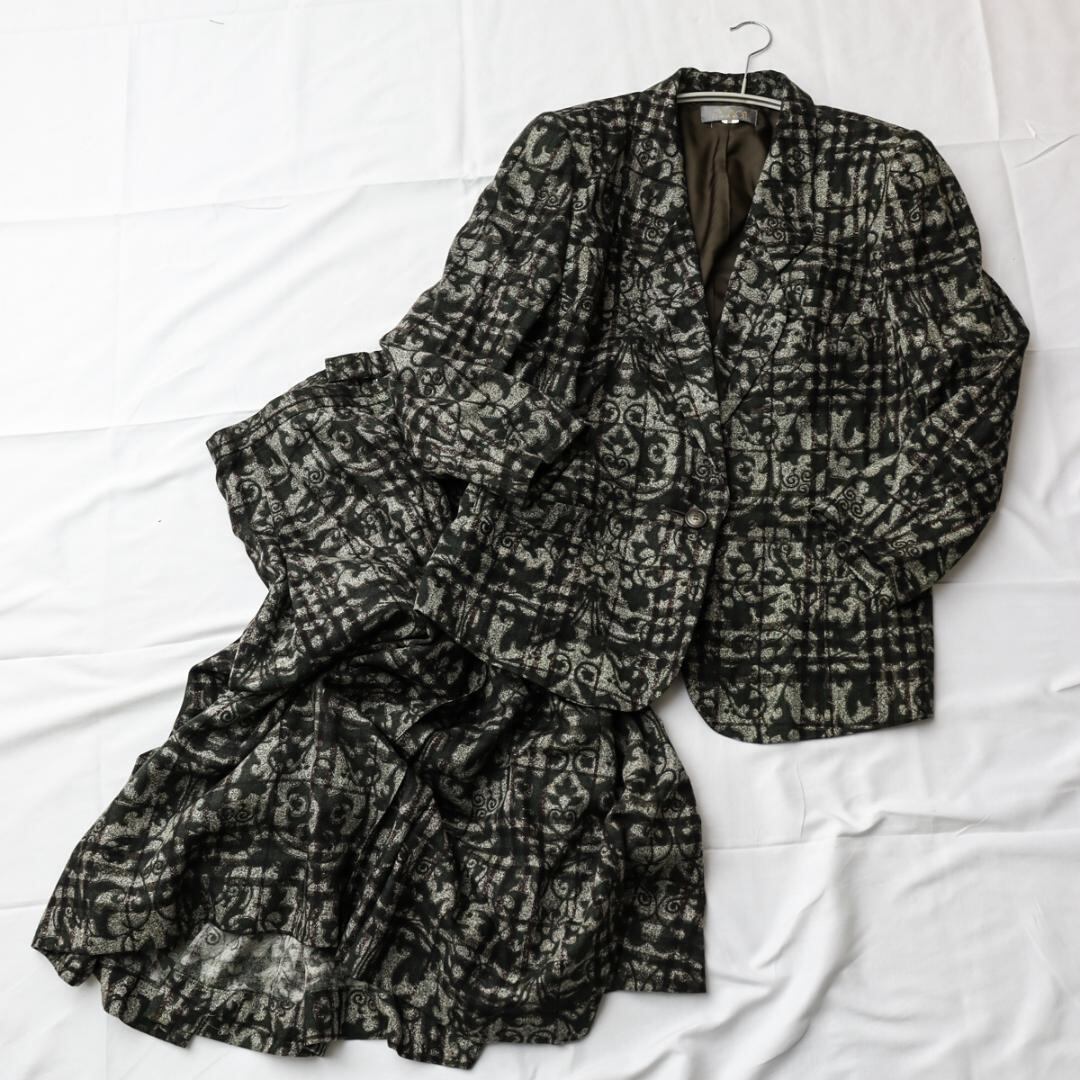 良品 レトロ レマロン セットアップ 大きい レディース F 古着 ヴィンテージ 長袖 大きいサイズ ジャケット スカート アンサンブル 総柄 肩パットあり vintage used ユーズド レマロン REMALON 二階堂ふみ B057