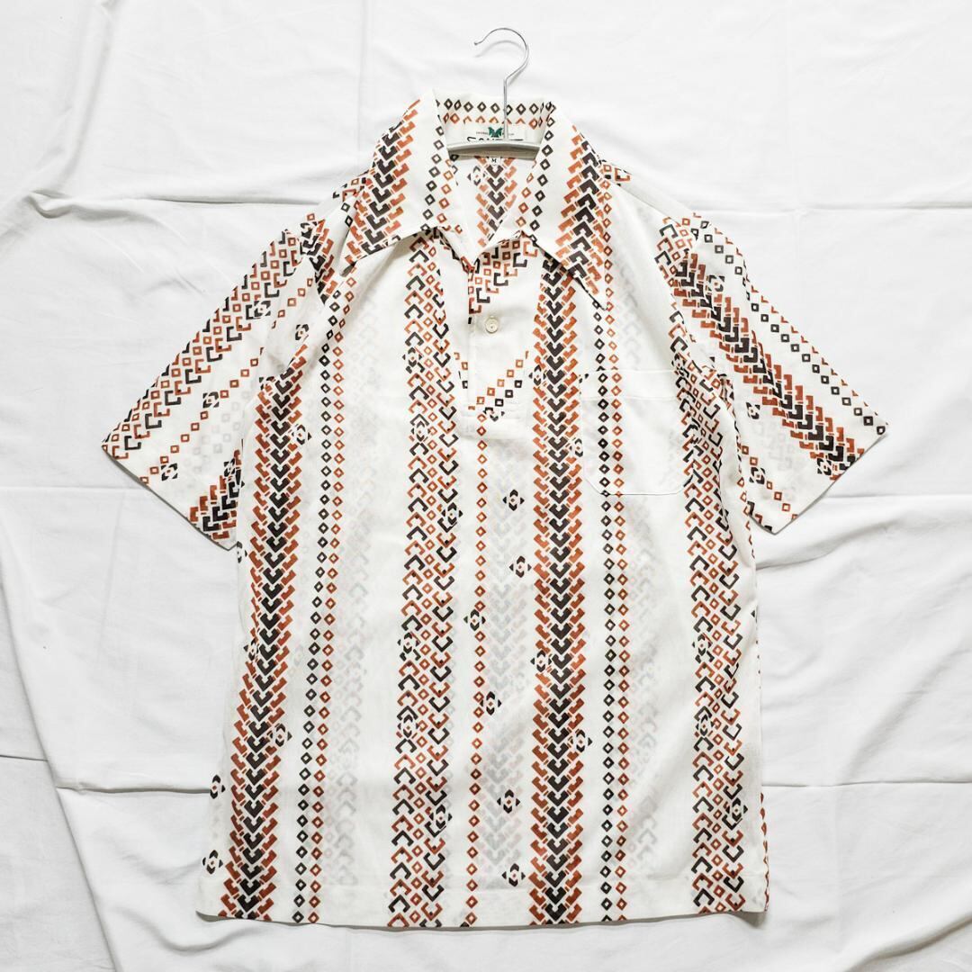 良品 レトロ SANSET ポロシャツ M 古着 総柄 半袖 ヴィンテージ トップス 柄シャツ vintage used ユーズド SANSET 菅田将暉 B080
