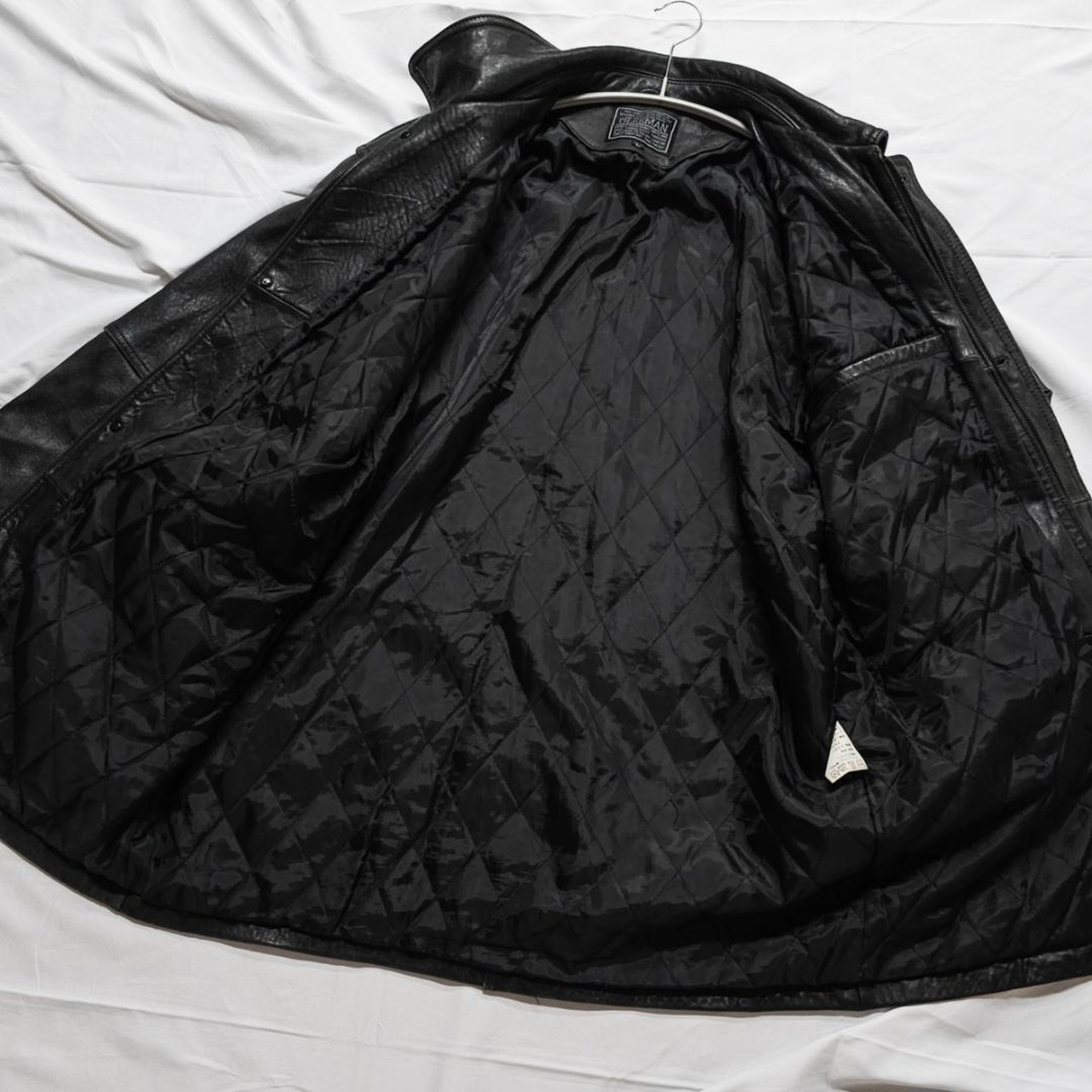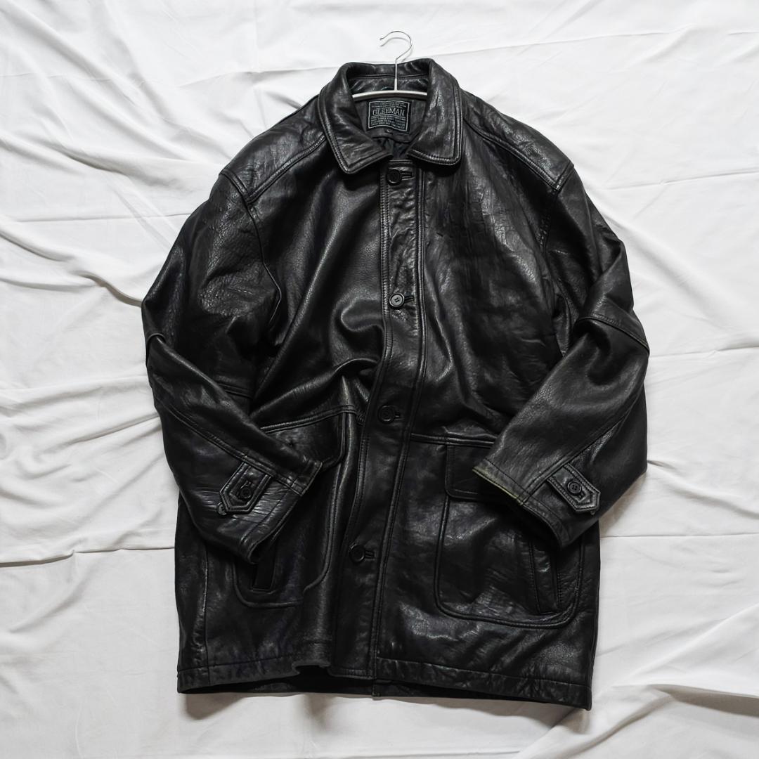 レトロ GLEEMAN レザー 本革 羊皮 大きい メンズ 古着 ヴィンテージ 長袖 大きいサイズ コート ジャケット アウター 無地 肩パットあり ボタン&ジップ vintage used ユーズド GLEEMAN 菅田将暉 B082