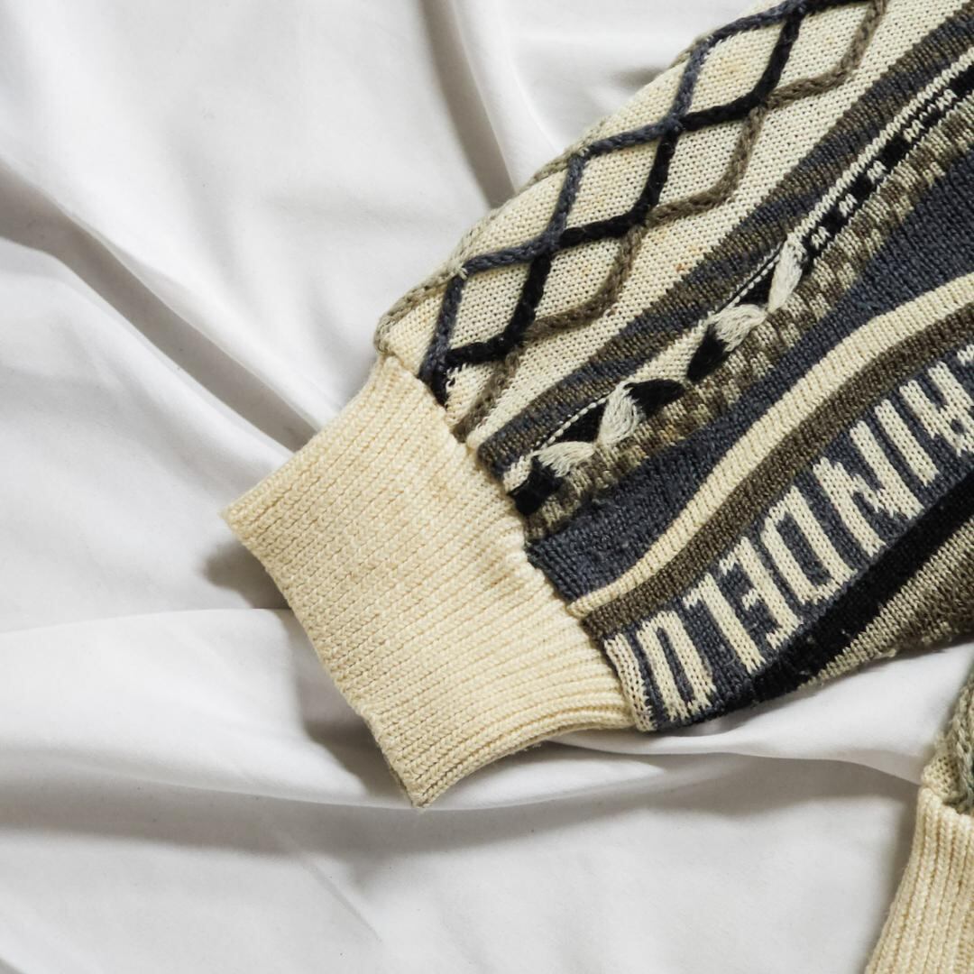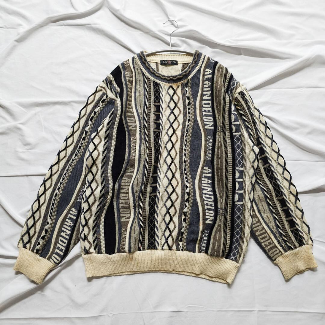 レトロ ALAIN DELON 3Dニット L 古着 ヴィンテージ セーター ニット 長袖 大きいサイズ トップス 総柄 vintage used ユーズド 菅田将暉 B090