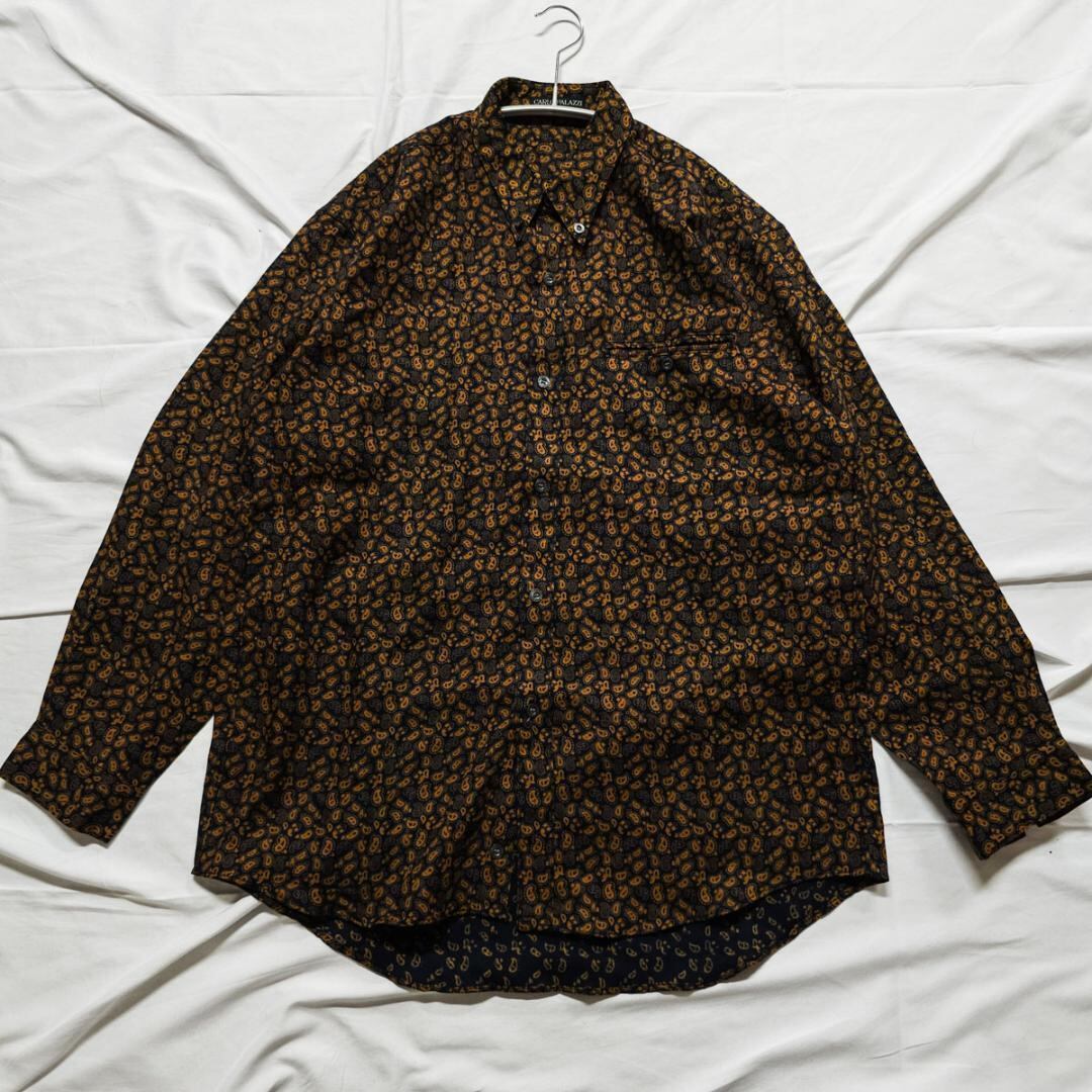 レトロ シャツ メンズ F 古着 長袖 大きいサイズ 総柄 メイズリー柄 トップス vintage ヴィンテージ used ユーズド カルロ・パラッツィ Carlo Palazzi 菅田将暉 B110