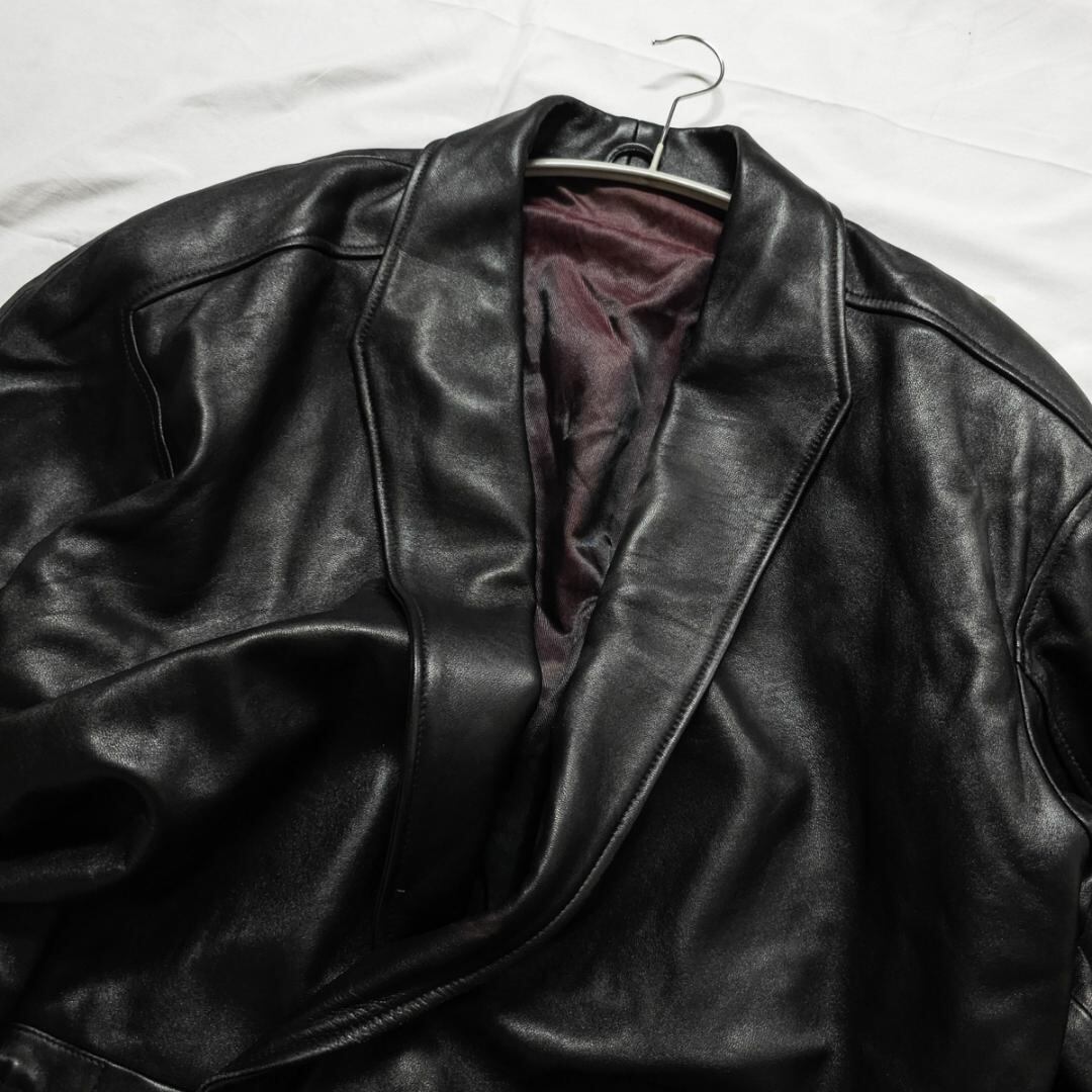 レトロ コート メンズ F 古着 長袖 大きいサイズ レザー(本革) 牛か羊(柔らかい革) ウエストに絞りがあります(画像参照) 裏地はペイズリー柄 裏に何かが付いていたボタンあり(画像参照) 肩パットあり vintage ヴィンテージ used ユーズド 菅田将暉 B112
