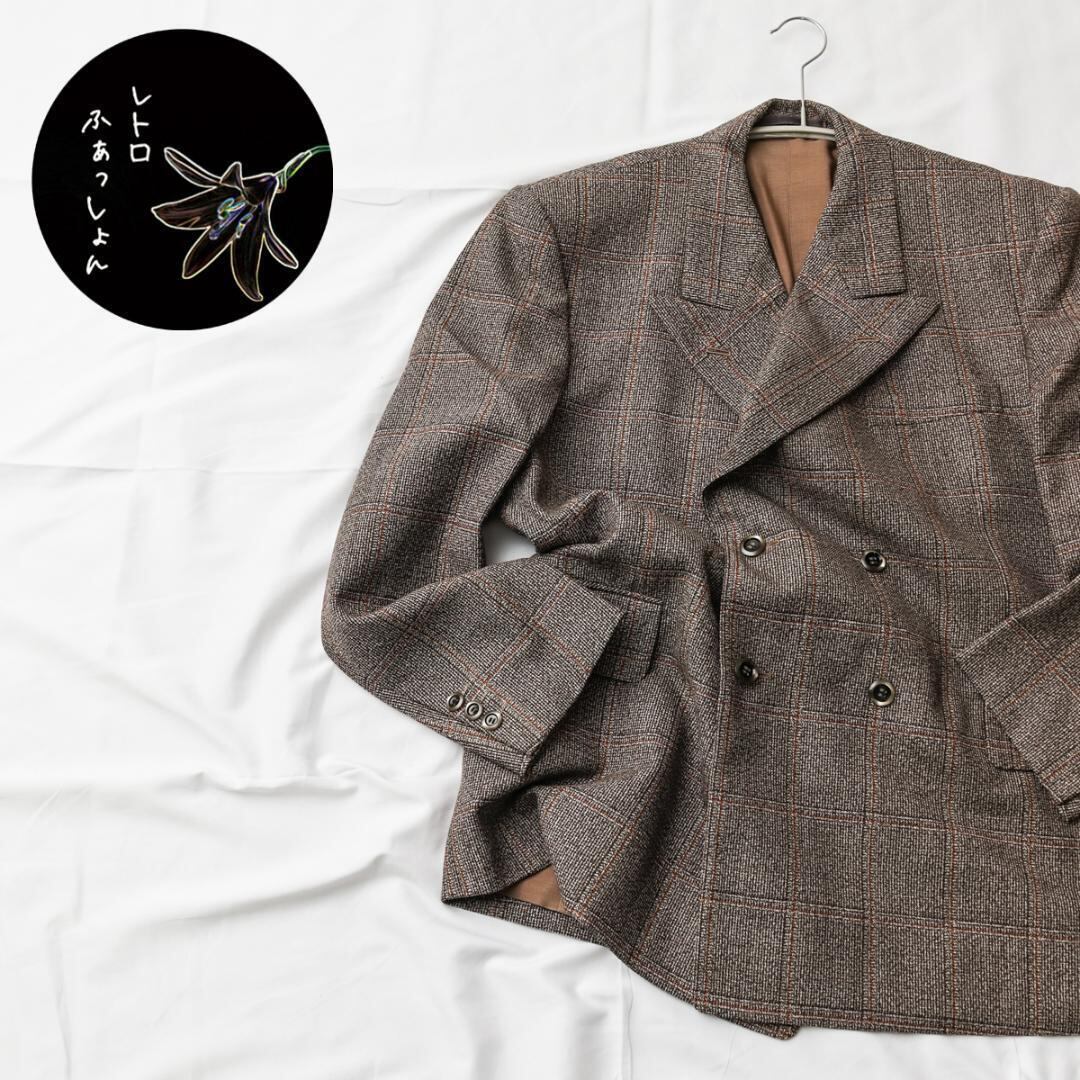 良品 レトロ テーラードジャケット メンズ スーツ F 古着 長袖 ダブル nameの印字あり vintage ヴィンテージ used ユーズド SOGO 菅田将暉 B069