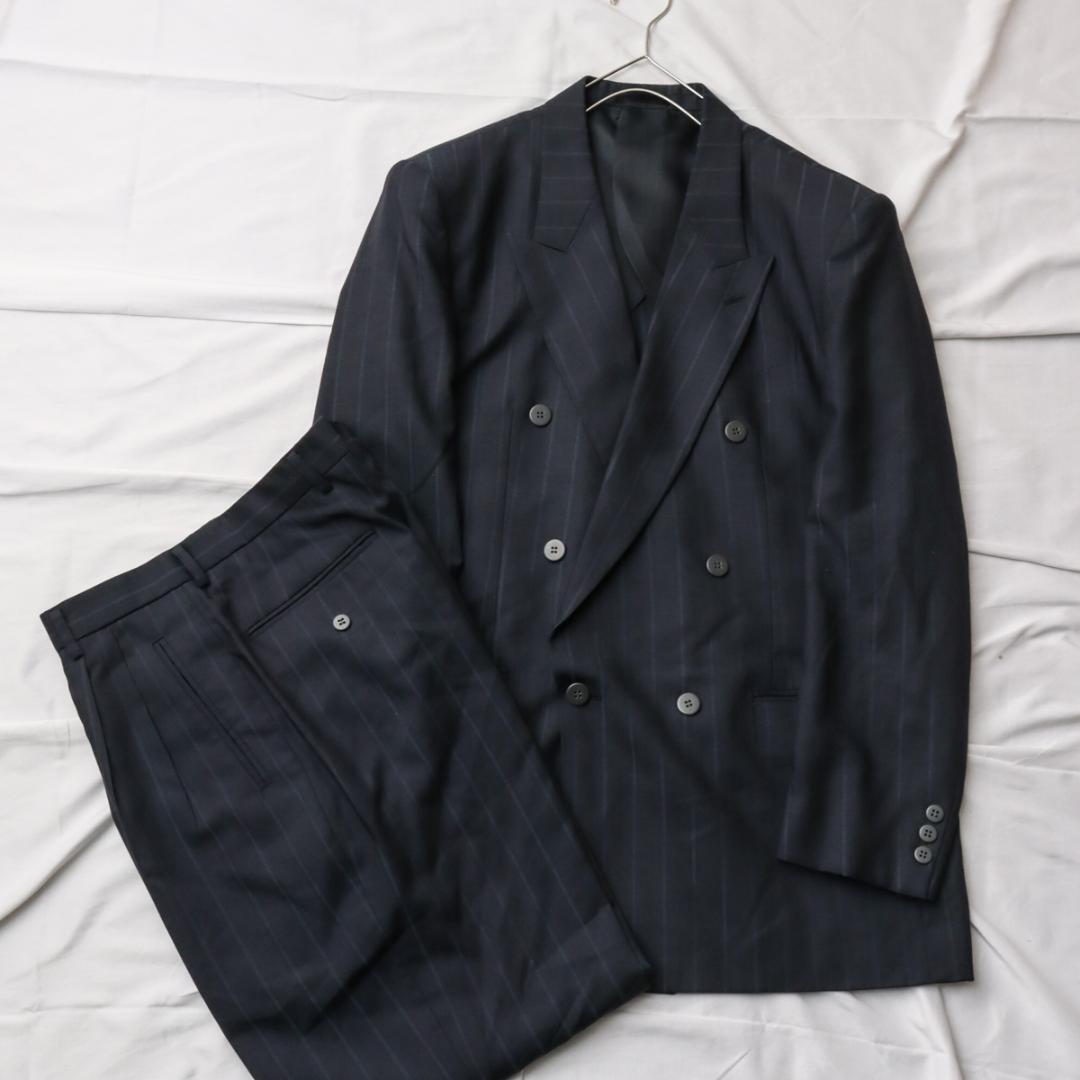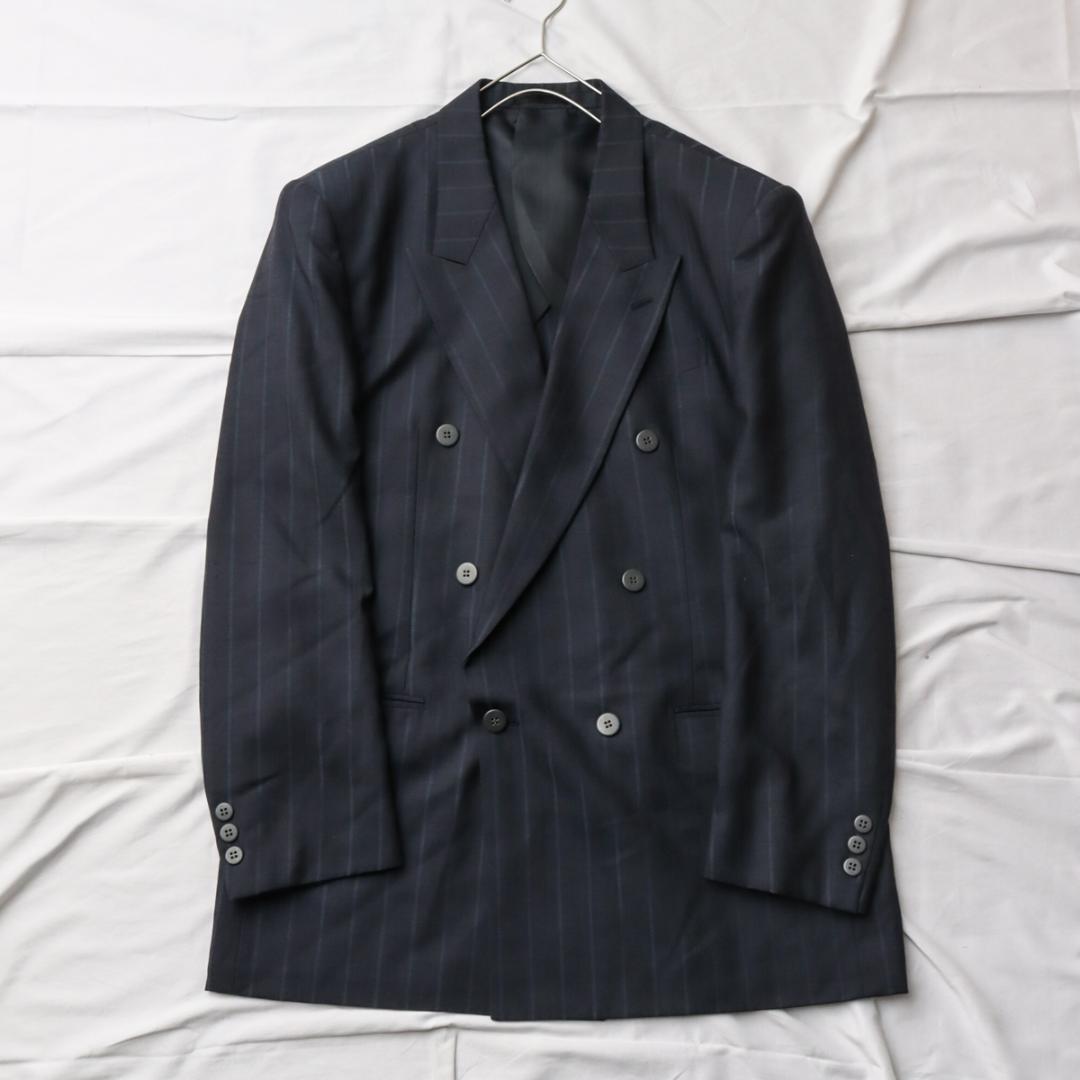 レトロ セットアップ 大きい メンズ 古着 ヴィンテージ 長袖 スーツ フォーマル ジャケット パンツ ストライプ 刺繍のネームあり ダブル vintage used ユーズド 菅田将暉 B161