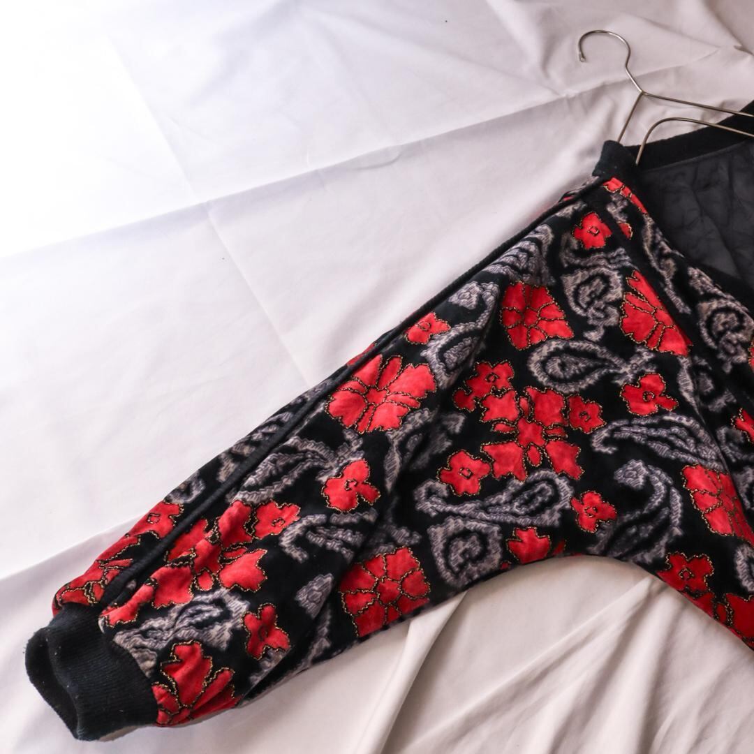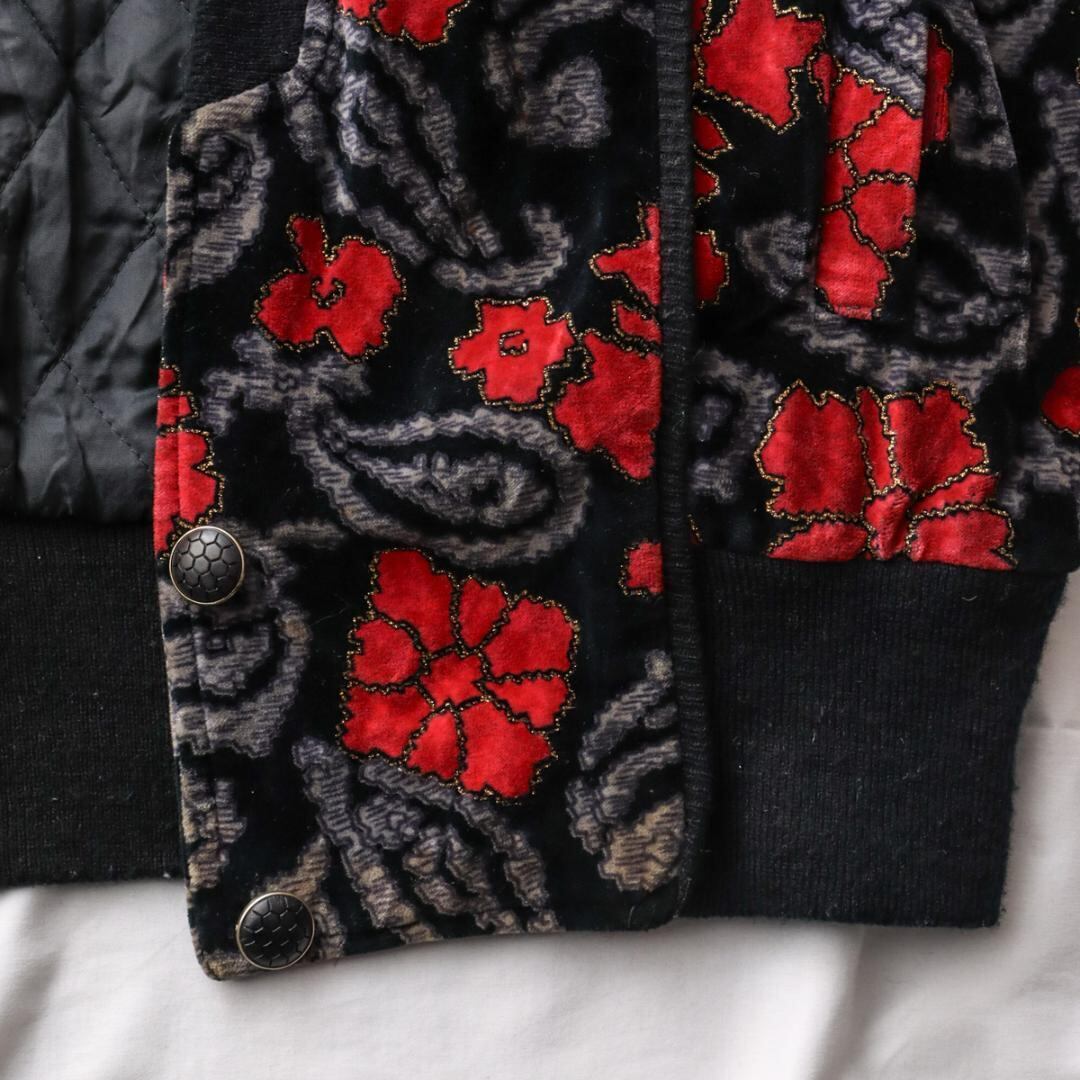 レトロ ジャケット 中綿 レディース F 古着 ヴィンテージ 長袖 中綿は薄めです ベロア(ベルベット) 総柄 花柄 肩パットなし vintage used ユーズド タグなし 高畑充希 B197