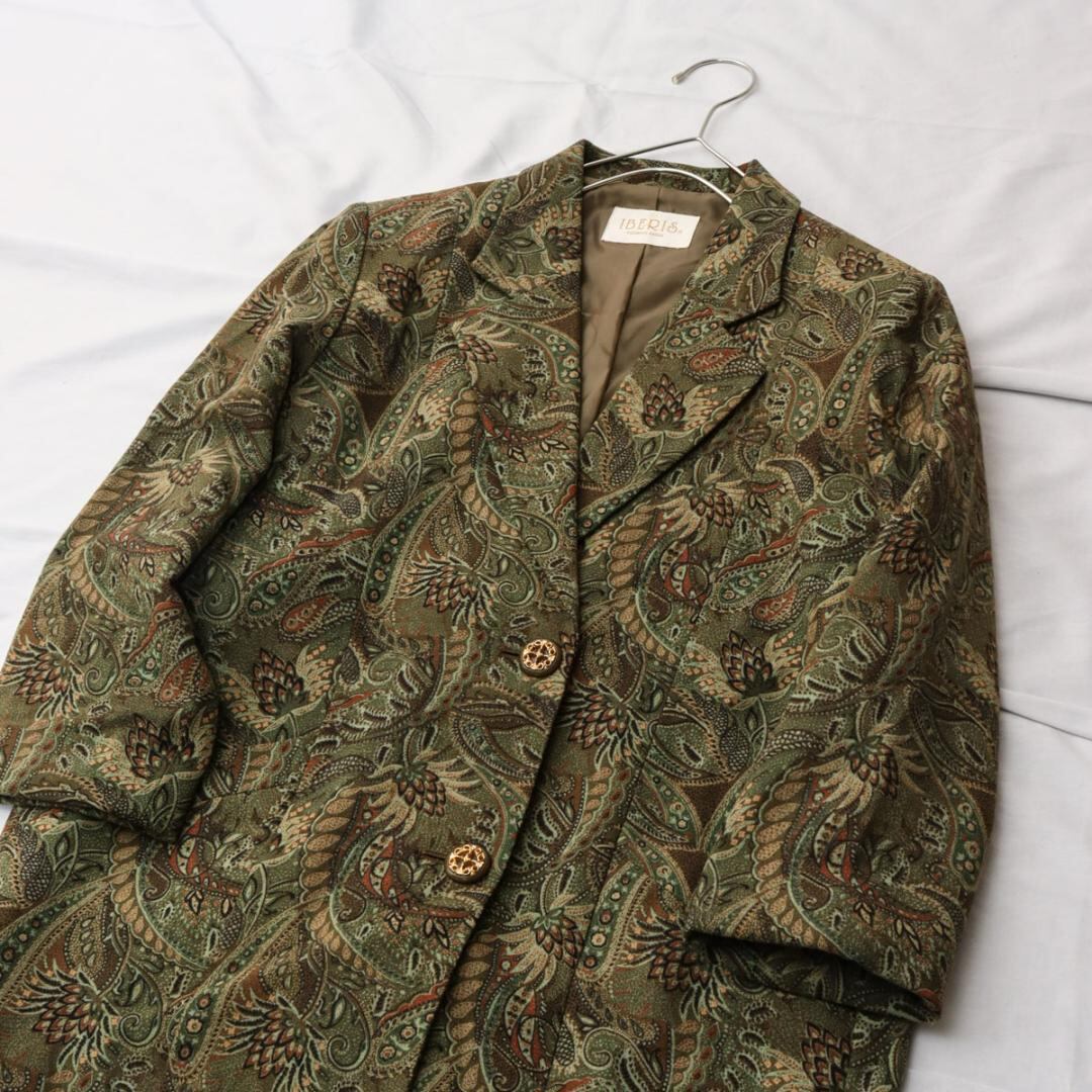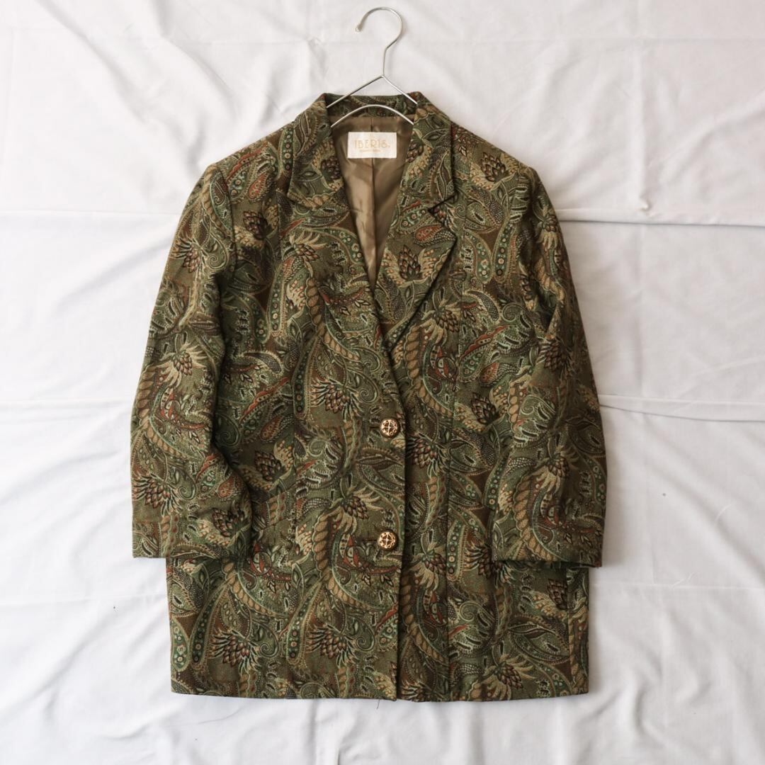 レトロ ジャケット レディース古着 ヴィンテージ ペイズリ 長袖 大きいサイズ テーラード 総柄 #アウター vintage used ユーズド IBERIS 二階堂ふみ B233